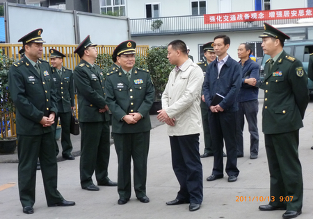 ??? 特约记者 王国军 报道 9月13日上午,,,,,成都军区副照料长王秋生少将、四川省军区照料长张培敏少将前往运业成都旅汽司荷花池汽车站视察指导交通战备事情。。。。。。。成都会交委、处、所相关向导陪同视察。。。。。。。