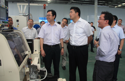 林书成市长(前排右1)在李亿中总司理(前排右2)陪同下现场调研精工公司