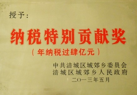 集团公司喜获“2012年纳税特殊孝顺奖”声誉称呼