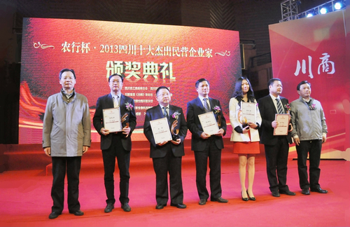 ÀîÒÚÖÐ×Ü˾Àí£¨×ó¶þ£©ÈÙâß¡°2013ËÄ´¨Ê®´óÓÅÒìÃñÓªÆóÒµ¼Ò¡±