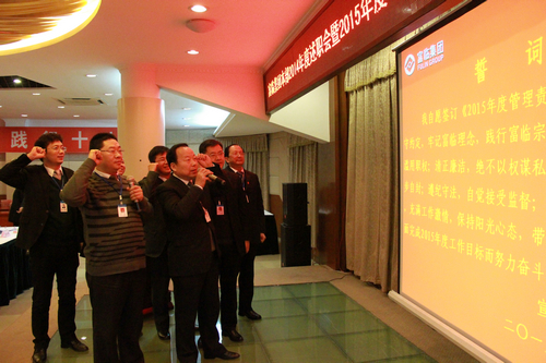 ??????? 述职竣事后,,,,,,,,李亿中总司理代表集团公司谋划班子与各部分总监(主任)签署了《2015年度管理责任书》。。。。。责任书签署后,,,,,,,,各部分认真人举行了庄重宣誓,,,,,,,,允许将遵守约定,,,,,,,,坚决完成目的使命。。。。。??????? 此次述职事情准备充分、剖解剖析客观周全,,,,,,,,述职历程认真严谨、环节紧凑,,,,,,,,展示了集团公司谋划班子及各部分认真人的管理者风范,,,,,,,,更为各述职人综合能力的提升起到了起劲的增进作用。。。。。
