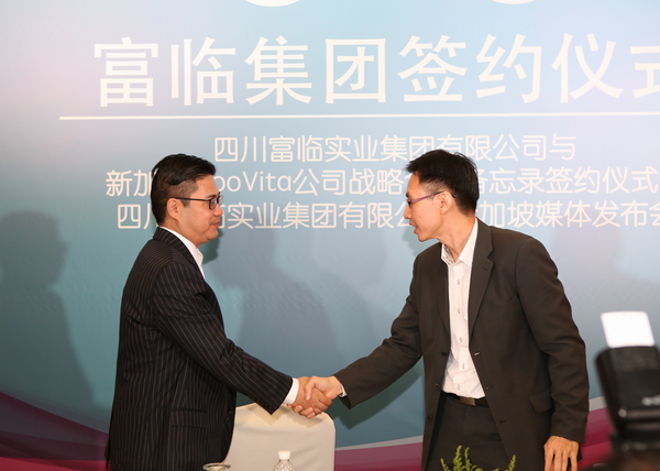 韦德网站官方入口集团副董事长安东(左)与MooVita代表在签约仪式现场