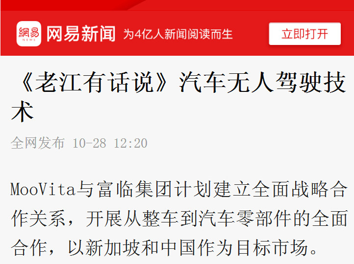 韦德网站官方入口集团与新加坡MooVita携手开发无人驾驶手艺 受到普遍关注