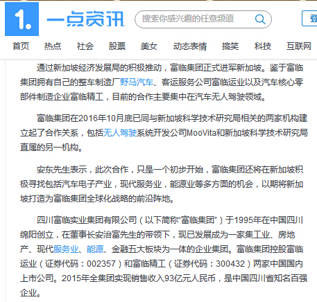 新加坡《团结早报》:四川韦德网站官方入口集团——具备整车制造能力,,,,,,,来新加坡齐创无人驾驶车。。。。 。。。