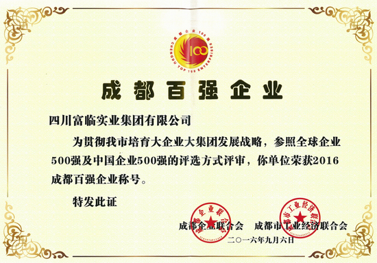 韦德网站官方入口集团荣膺“2016成都企业100强”第30位
