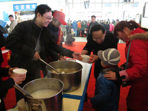 李亿中总司理到南湖汽车站为返乡游客送免费午餐