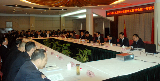 ??? 本网讯 4月8日,,,,,,集团公司在本部四楼聚会室召开2013年4月月度谋划管理事情例会暨一季度事情总结会。。。。。安董事长出席聚会并作主要指示,,,,,,李亿中总司理作总结讲话。。。。。集团公司谋划班子成员、监事会主席、总司理助理,,,,,,各部分总监(主任),,,,,,所属各企业董事长、总司理、副总司理,,,,,,重点企业谋划班子成员加入聚会。。。。。