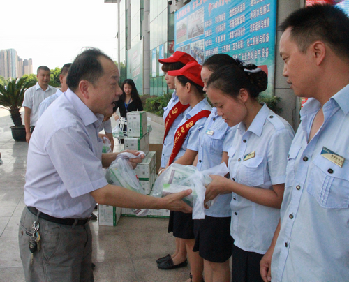 韦德网站官方入口运业党委副书记、工会主席王庆霖为一线员工送去清凉饮品。。。。。。